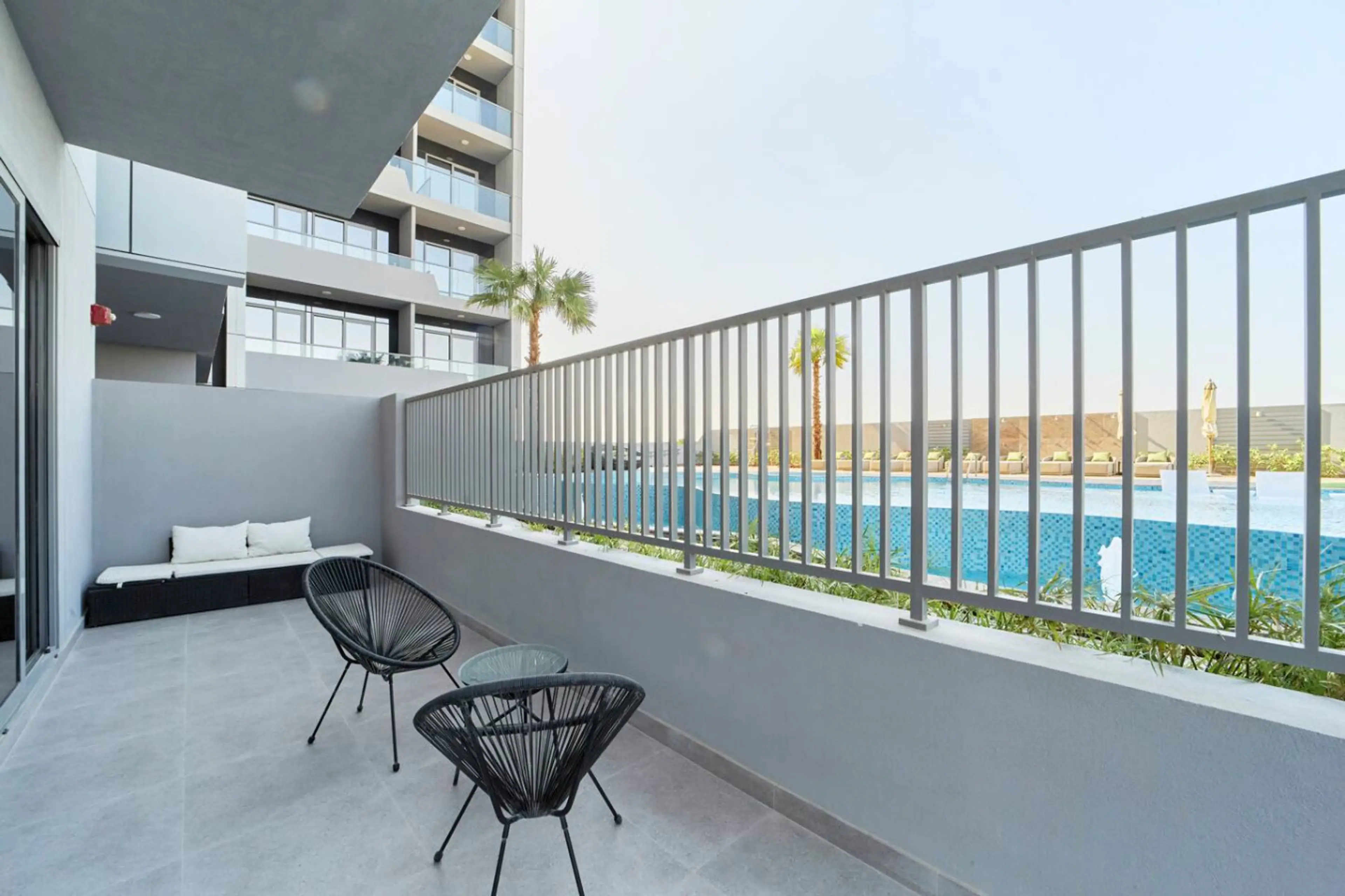 Welcome to The Vybe JVC | 1BR w/ Huge Terrace & Pool View Relax in this bright, modern apartment featuring a spacious private terrace overlooking the pool perfect for morning coffee or sunset lounging. Inside, enjoy a cozy living area with smart TV, a fully equipped kitchen for easy meals, and a ser...