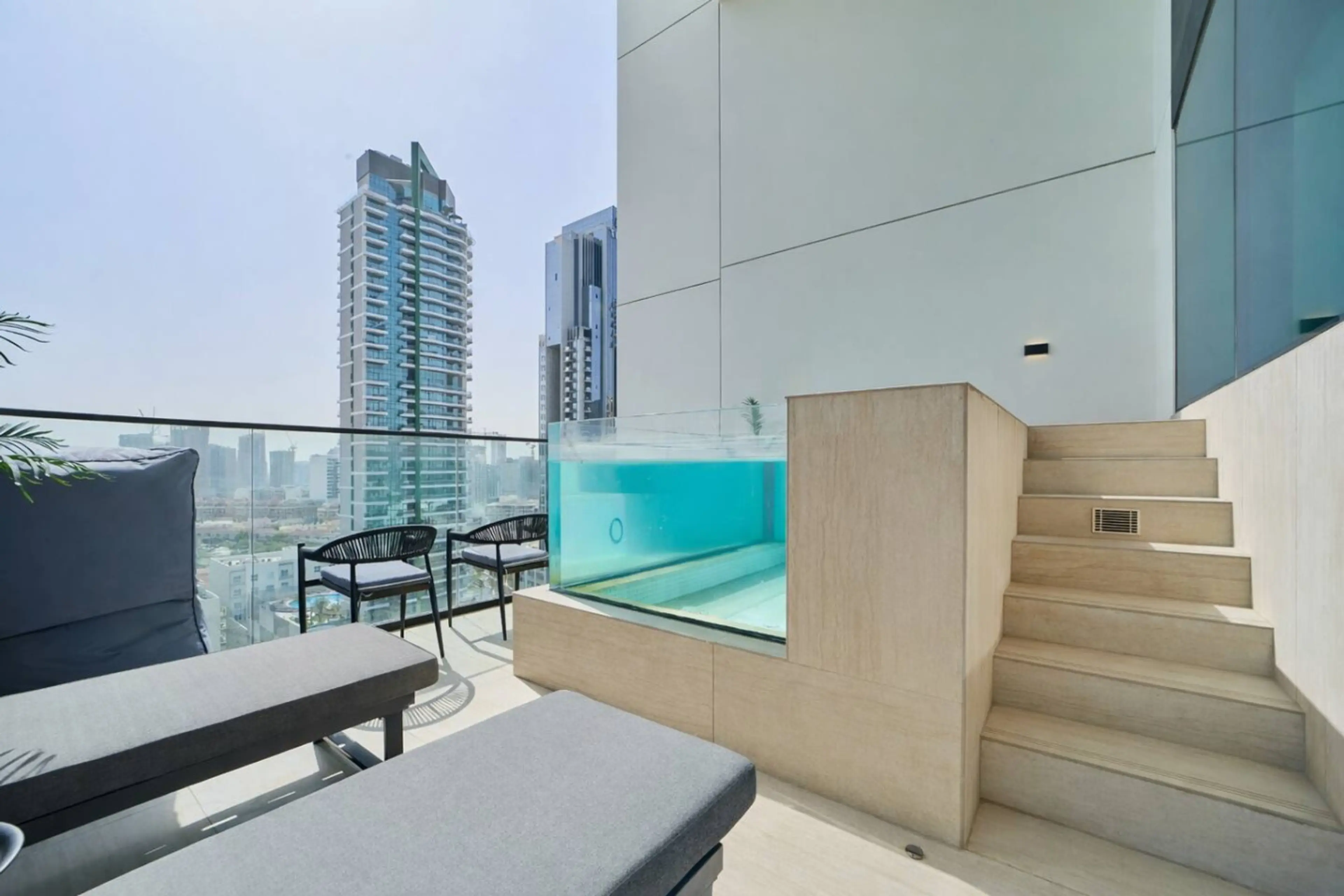Welcome to this elegant 2BR apartment in JVC featuring a rare private pool on the balcony. Perfect for families, couples, or business travelers, the apartment offers a bright living area with Smart TV, a fully equipped kitchen, two comfortable bedrooms with premium linens, and modern bathrooms. Step...